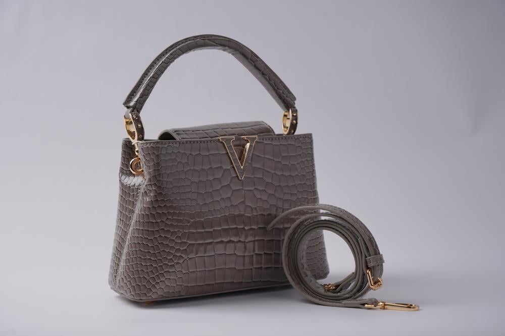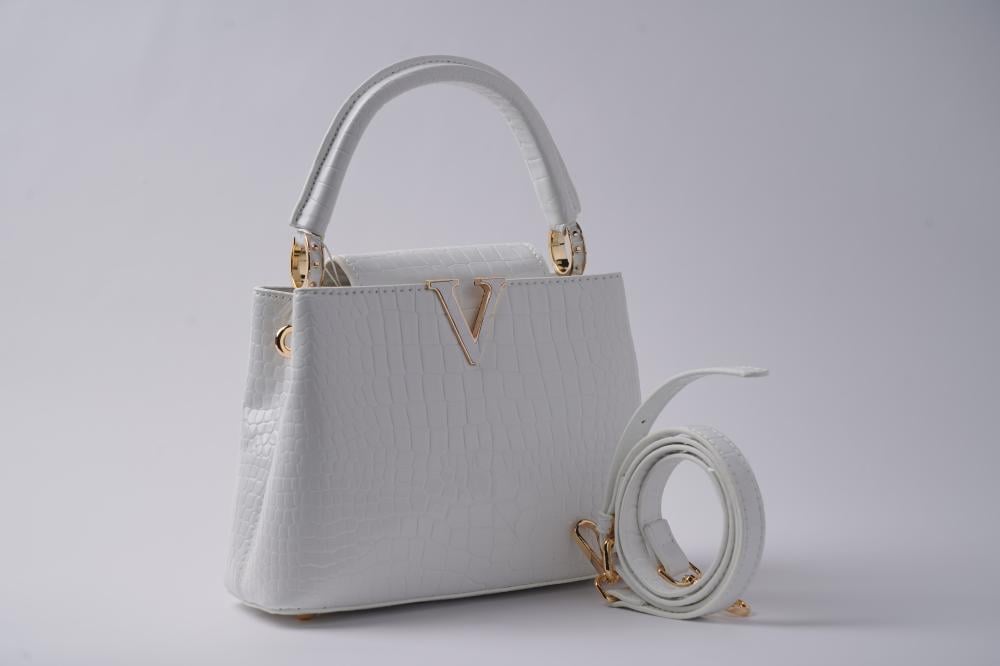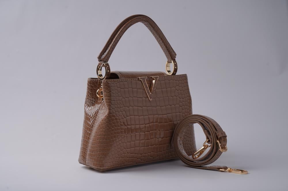 حقيبة بتصميم فاخر من لفيل، مصنوعة من جلد تمساح صناعي بنقشة جذابة ولمعان ذهبي يضفي لمسة فخامة. مثالية لكل لحظة في يومك، بخفة وزنها وسعتها العملية. كل حقيبة من لفيل ليست مجرد إكسسوار، بل رسالة أناقة تعبّر عن ذوقك وتكمل حضورك.