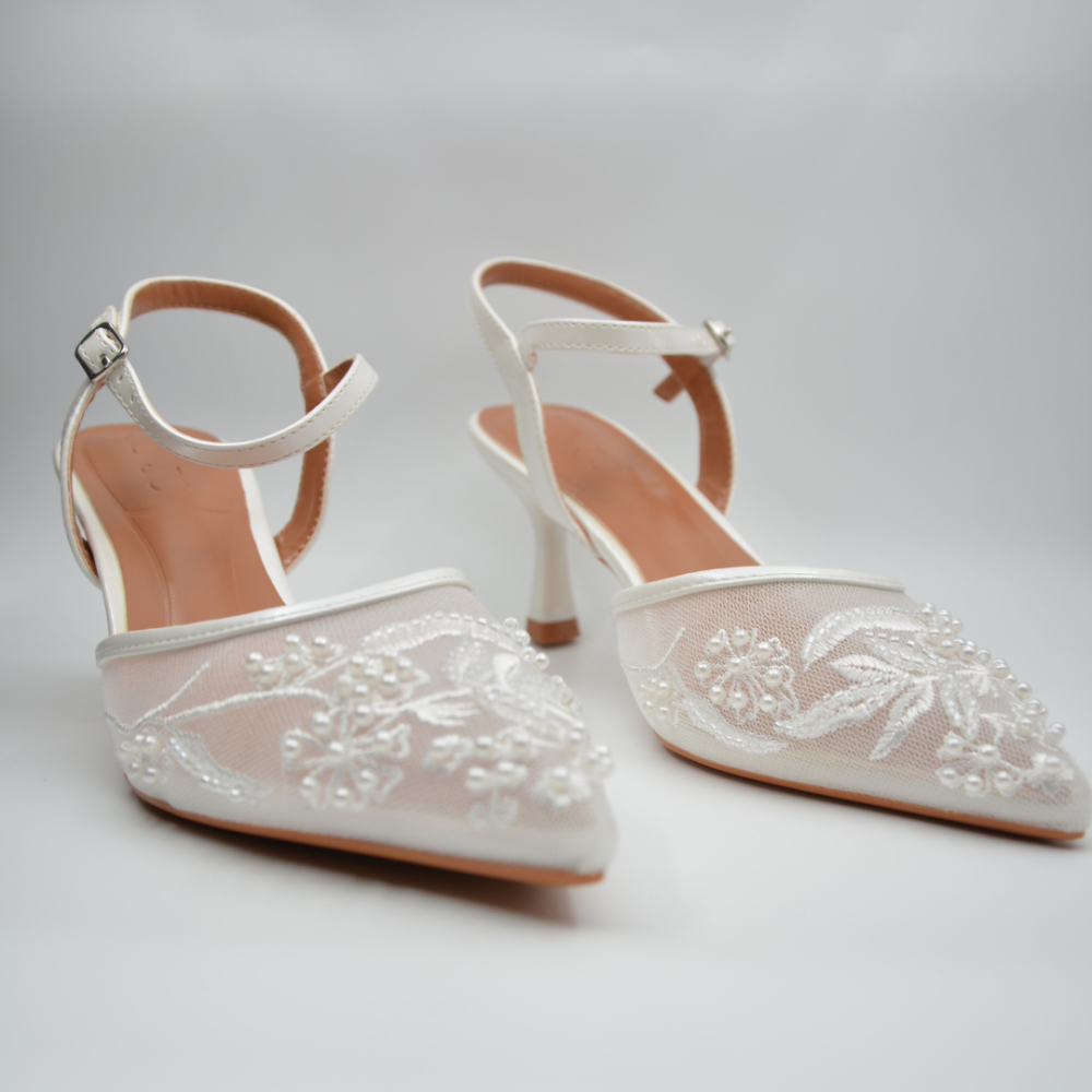 كعب سهرة مرصع بالكامل بالكريستالات، تصميم أنيق جدًا يخطف الأنظار. خامة مريحة ولمسة نهائية فاخرة تناسب المناسبات المهمة. مثالية لحفلات الزفاف أو الإطلالات الكلاسيكية بالليل.